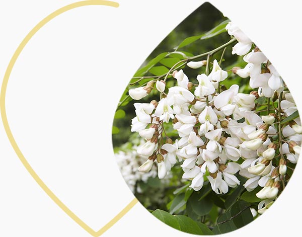 L’acacia est principalement constitué de gomme arabique, d’une huile essentielle, de minéraux, de tanins, d’un mucilage (une substance végétale constituée de polysaccharides qui gonfle au contact de l’eau) et de flavonoïdes (des antioxydants).