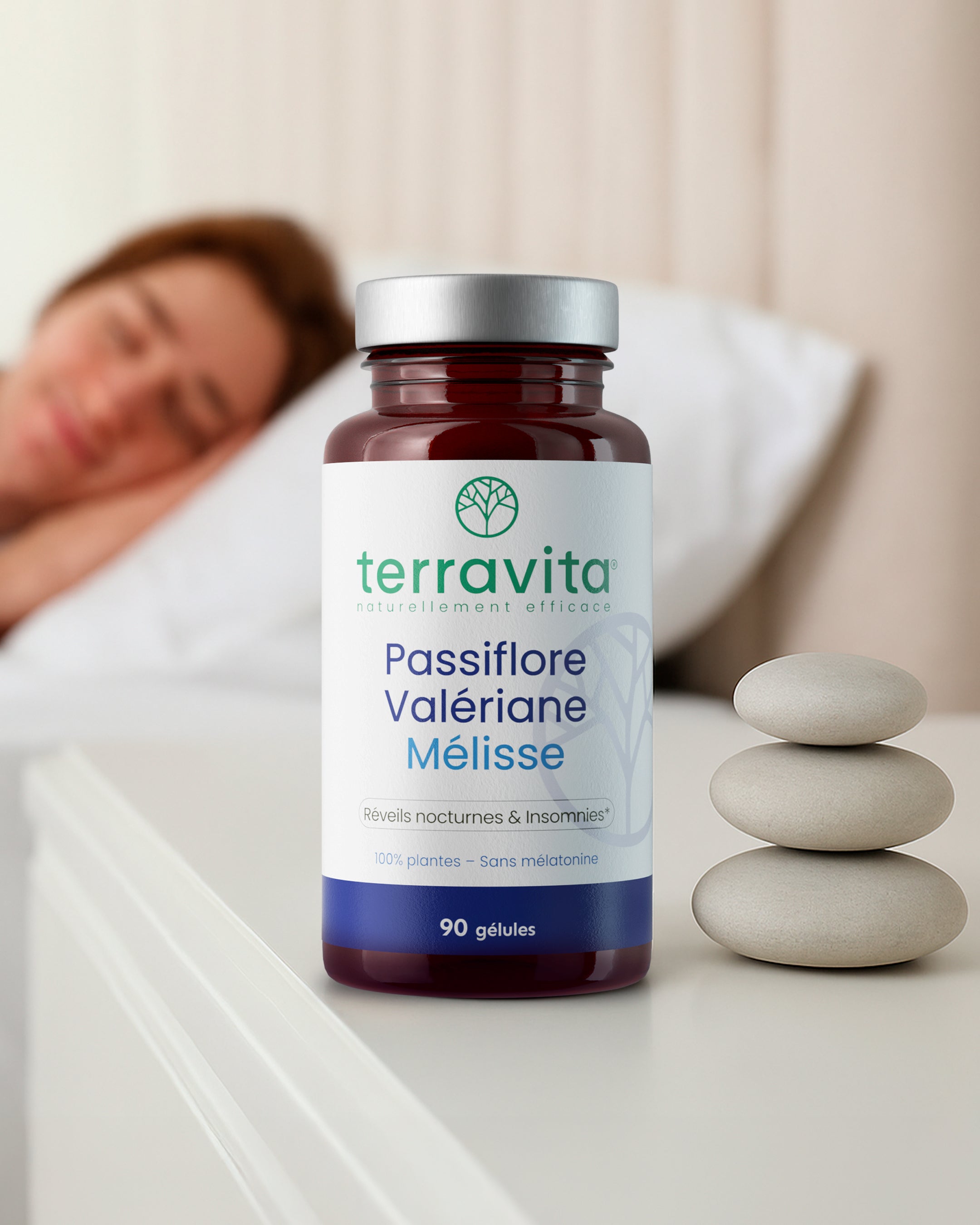 Terravita a conçu pour vous un produit 100% naturel composé de 3 plantes renommées dans la gestion du stress et du sommeil.